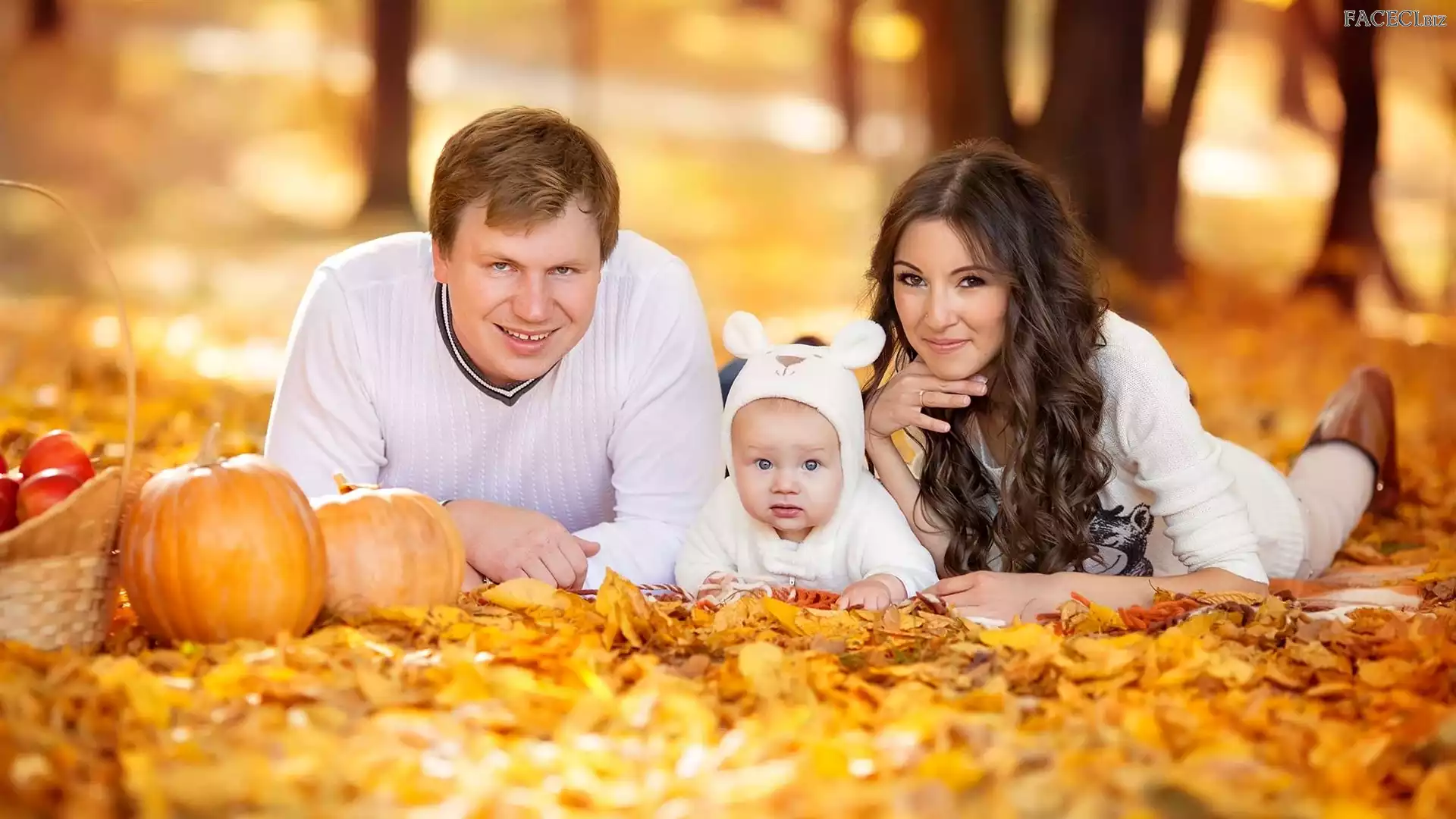 Dziecko, Mama, Dynie, Liście, Tata, Jesień - faceci.biz